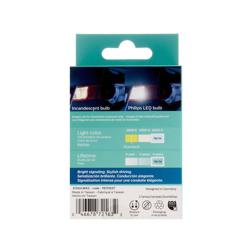 Philips LEDLights that live on Ultinon LED lights last 8 years 3155LED White Ultinon LED bulbs are made to fit and enjoy for longer The unique innovat...