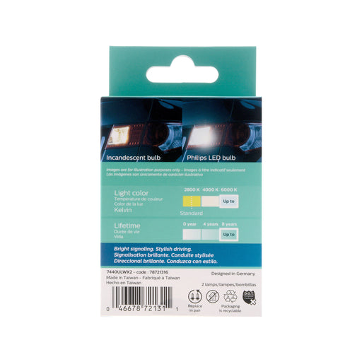 Philips LEDLights that live on Ultinon LED lights last 8 years T20 (7440LED, W21) 12V Red or White Intense Ultinon LED bulbs are made to fit ...