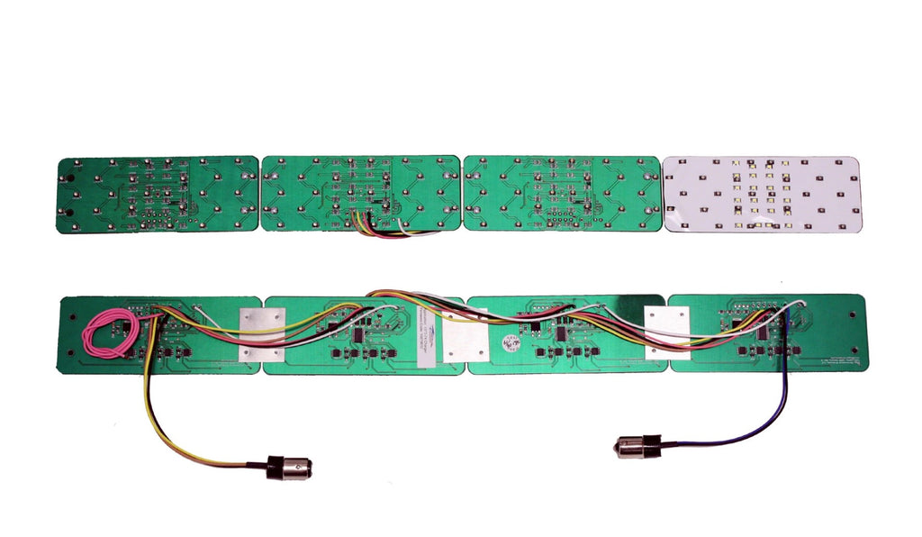 The Classic Sequential Tail Light (CST) kits are direct retrofits and replacements for incandescent light bulbs in classic vehicles. These kits incorporate high-efficiency LED lights that increase tail light brightness, reliability, and longevity. The kits replace all the functionality of the light bulbs they replace. This includes low-level running light illumination, brake light illumination, turn signal illumination, emergency flash, and backup lighting, where applicable. In addition, the kit includes a self-contained microprocessor and circuitry to enable a multitude of sequential lighting patterns. There is no separate sequential lighting control module to mount and wire up. The kit is designed to work with OEM tail light housing and lenses as well as aftermarket components. For LED lighting to function correctly, a Low Current Flasher Module must be installed in place of the traditional turn signal flasher module.